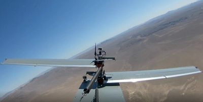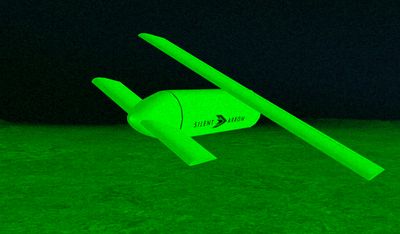 The aircraft is designed for loitering, meaning it can stay aloft for a while before setting down its payload.